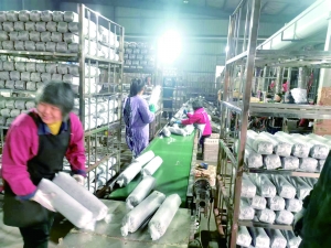 日前,在卢氏县产业集聚区的金海生物科技有限公司制棒生产车间里,2台生产线上几十名工人加班加点赶制菌棒,全力满足7月份以前该县12个出菇基地和美国、韩国出口订单供货需求。高长军 摄影报道