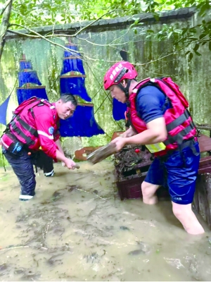 6月28日上午7时,榕江县平阳乡小丹江突发洪水,神鹰救援队立即开展人员疏散工作,疏散群众50余人。随后,救援队人员不顾齐腰的洪水奔赴三和希望小学开展排洪。