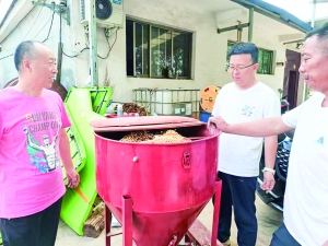 日前,在渑池县英豪镇英东村100亩大豆根瘤菌接种技术示范基地,农技人员正严格按照规程进行大豆拌种作业。