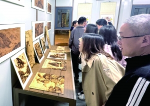 “双节”期间,卢氏县潮玩街游人如潮,文创集市非遗展示区内精美的烙画、剪纸、年画等艺术作品吸引众多市民驻足观赏,体味非遗魅力。