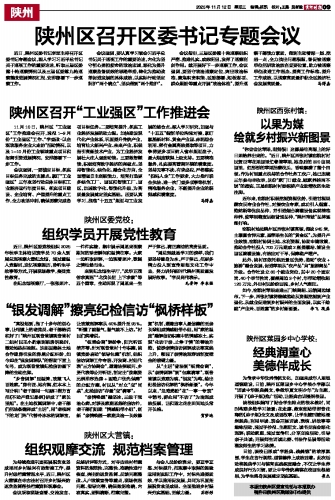 11月10日,陕州区“工业强区”工作推进会召开,通报1-9月份“工业强区”工作、“学查改·以企观政服务企业大走访”活动情况,以及1-10月份工业领域重点项目和招商引资进展情况,安排部署下一步工作。