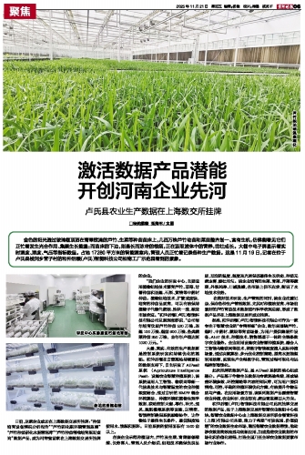 日前,这家企业成功在上海数据交易所挂牌:“种苗培育设备情况分析报告”“芦竹驯化期环境管理监测”“芦竹种苗驯化水肥管理库”“芦竹种苗精准培育规划查询”数据产品,成为河南省首家在上海数据交易所挂牌的企业。