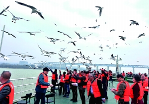 “太美了,登船到黄河上看海鸥,还是头一回体验呢!一路上海鸥都追着船在飞,向大家讨食。”这是黄河一号码头“天鹅号”游轮特有的“追鸥航线”,几十块钱就能体验一把“河上投喂员”的快乐。