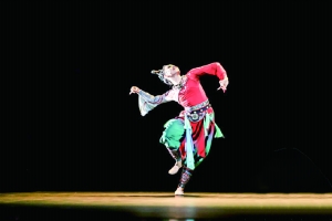诗句中的一个“柔”字,在舞者踩踏节拍的瞬间被表现的淋漓尽致,道尽了红锦靴材质的优美、华贵,感觉的柔美。