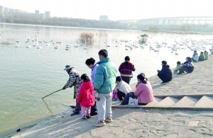 暖冬时节,天朗气清。三门峡天鹅湖国家城市湿地公园游人络绎不绝,各地游客带着对黄河湿地风光与白天鹅的向往,在此惬意游览。