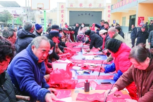 闻讯而来的村民早早来到现场,或围站书案旁欣赏精湛技艺,或满怀期待等候新春祝福。拿到墨迹未干的春联和“福”字,村民们脸上洋溢着幸福笑容。不少村民还与书法家亲切交流,请教书法技巧、探讨楹联文化,互动频繁、气氛热烈。