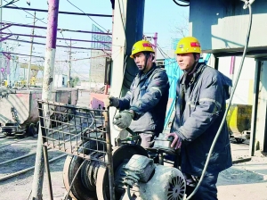 春节假期后,河南能源义煤公司常村煤矿层层上好“收心第一课”,引导干部职工迅速收心归位、铆足干劲,立足岗位、开足马力,以饱满状态和实干作风,保障矿井安全生产平稳高效运行,奋力冲刺首季开新局。图为2月24日,该矿职工在井口调度绞车下料提车。