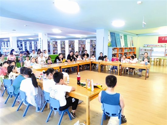 经过一段时间的智慧演说+课程学习,为了展示小记者的风采,6月30日,三门峡日报小记者中心在三门峡市图书馆举办毕业汇报演出。图①为家长和小记者欢聚一堂。图②为小记者现场表演。 刘彦君 摄
