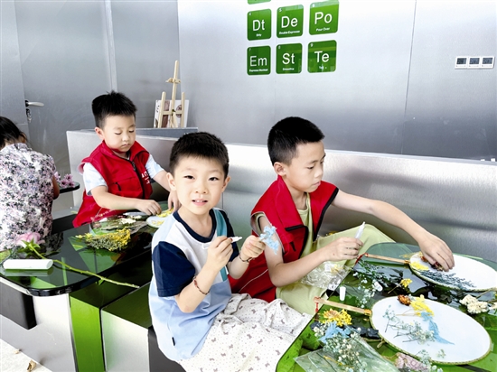 6月30日,三门峡日报小记者中心组织小记者将中国传统文化团扇与代表永恒的永生花相结合,制作永生花团扇。 刘彦君 摄