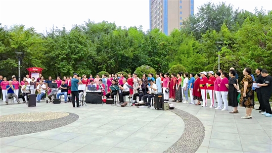 近来,每天清晨,在卢氏县卢园广场,总有一群老年人在小乐队的倾情伴奏下齐声高唱红歌,讴歌新时代。他们演唱的《我们走在大路上》《祝福你,祖国》《革命人永远是年轻》等红色歌曲,歌声嘹亮,情绪饱满,成为卢园广场上一道亮丽的风景线。 杜鸿征 訾爱军 摄
