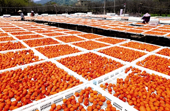 福建省福州市永泰县享有“李果之乡”的美誉,李果产业作为永泰县的支柱产业之一,具有悠久的发展历史,是当地农民创收增收的重要途径。初秋时节,村民们抢抓晴好天气,在房屋前后晾晒李干,乡村晒场被点缀成一幅幅缤纷的画卷。 新华社发