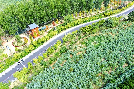 9月19日,沿黄生态廊道陕州区段,生态绿廊与岸边绿地构成了一幅美丽的生态画卷。 近年来,陕州区不断加强沿黄生态保护治理,着力打造人与自然和谐共生的复合型绿色生态廊道,有效带动了沿黄乡村高质量发展。 本报记者 王建栋 摄