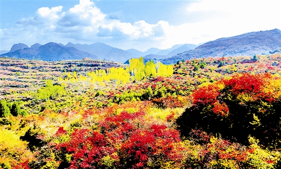 渑池县城北山区十万亩红叶层林尽染,远远望去,漫山遍野的红叶构成一幅美丽的秋景图,带火了乡村游,吸引了众多游客拍照留念;灵宝市寺河山红叶美如画;伏牛山上五彩斑斓,仿佛被打翻了的颜料盘……每年的10月下旬到11月初是赏红叶的最佳时节,让我们在醉人的红叶里体味三门峡的秋。