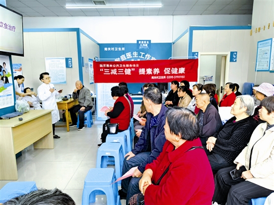 为倡导科学、文明、健康的生活方式,三门峡经济开发区南关村卫生所每周开展健康讲座,为居民送上健康知识。图为近日该卫生所组织“三减三健”保健知识讲座,受到辖区居民欢迎。 本报记者 王梦 摄