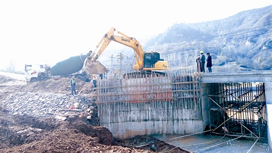 11月26日,在市城乡一体化示范区(高新区)阳店镇凤凰峪主干道路项目施工现场,工人们正加紧施工。该项目建成后,将极大改善阳店镇山区群众出行和农产品运输条件,进一步方便农特产品对外销售。 陈瑞革 史晓静 摄