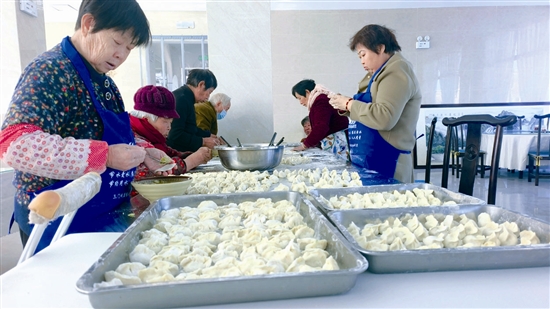 近日,湖滨区高庙乡大安村的幸福餐厅里洋溢着温馨欢乐的氛围,老人们与村内爱心志愿者一起唠着家常包着饺子。
