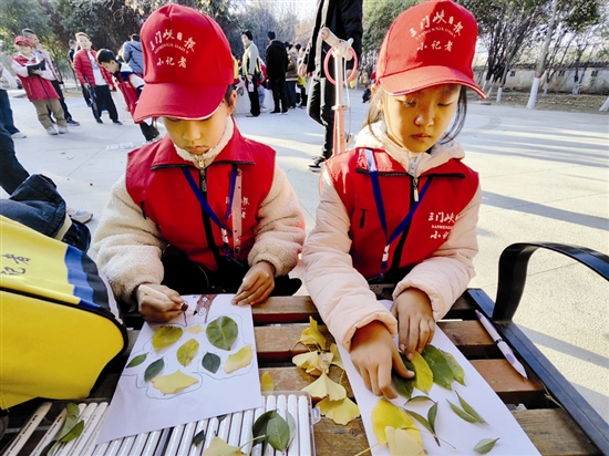 11月30日,三门峡日报小记者走进陕州区甘棠公园,学习植物相关知识,感受生态三门峡的魅力,动手制作树叶剪贴画,争做大自然的守护者。 曹嘉琦 摄