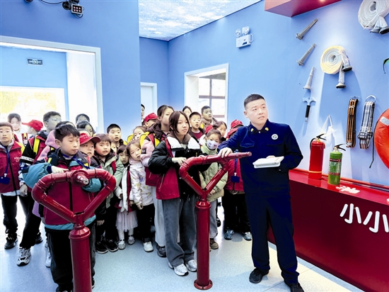 12月1日,三门峡日报小记者走进灵宝市消防救援大队开展社会实践活动,体验消防员日常工作。图为消防员为小记者讲解消防救援知识。 宋倩 摄
