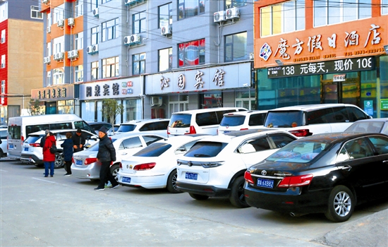 12月26日,陕州区大营镇温塘村温泉宾馆门前,来自五湖四海的自驾车辆竞相停驻。