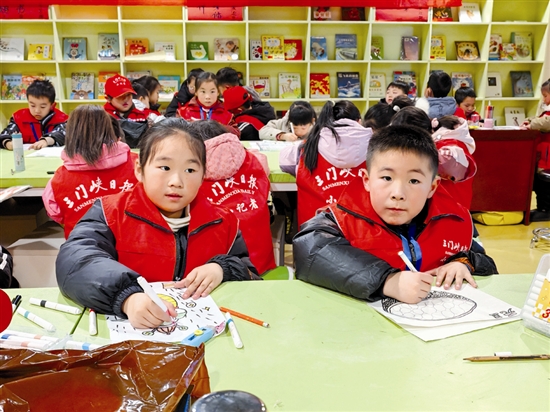 为让小记者更好地了解我国传统节日文化,加深对元旦的认识,12月28日,三门峡日报小记者中心联合卢氏新华书店,共同举办“喜迎元旦 手绘新年”主题活动。图为小记者正在手绘作品。 李娜 摄