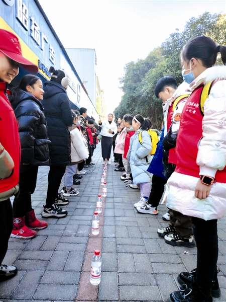 12月28日,三门峡日报小记者来到河南火山岩矿泉水有限公司,近距离观看水的制作过程,探索水的奥秘。图为小记者与工作人员做互动游戏。 种海蓝 摄