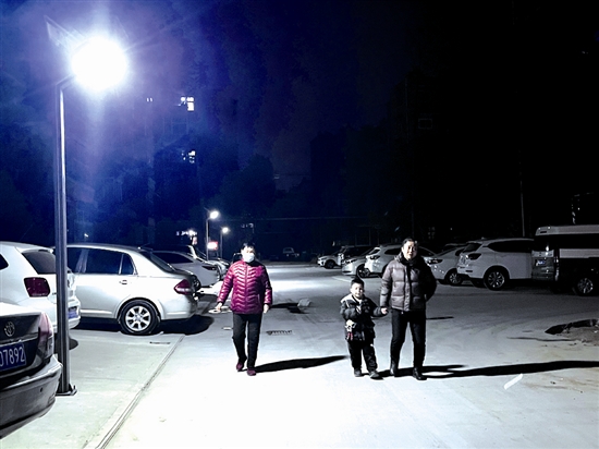 1月6日晚,位于湖滨区文明路的市直东区院内,居民在路灯下散步。