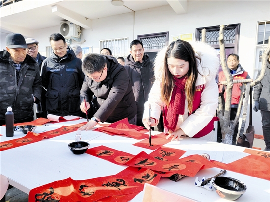 ⑥湖滨区书法家协会会员及报社志愿者在义写春联