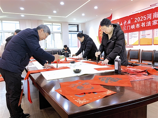 1月16日,灵宝市书法家协会走进该市西华社区,为群众书写春联。当天,共为社区群众书写春联200余副,受到群众一致好评。 段景波 摄