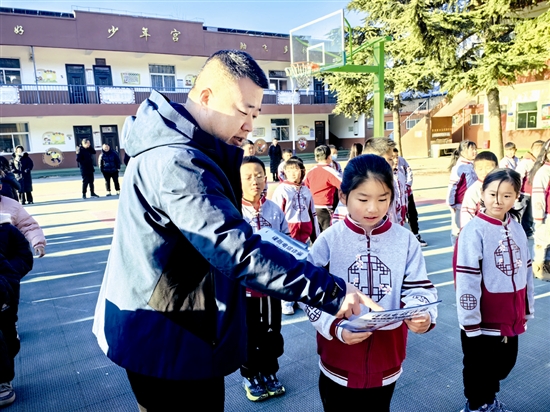 1月16日,湖滨区磁钟乡组织该乡平安办、派出所、司法所联合走进磁钟中心校,集中开展以寒假安全教育为主题的宣传活动,为该校师生们讲好寒假法治“第一课”。 王秉 赵海波 摄