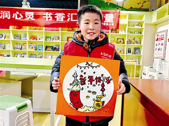 1月17日,三门峡日报小记者中心联合卢氏县新华书店开展“巳巳如意贺新春,年味浓浓润童心”新春主题活动。在工作人员带领下,小记者了解了春节文化知识,手绘了春节主题画。图为小记者展示画作。 李娜 摄