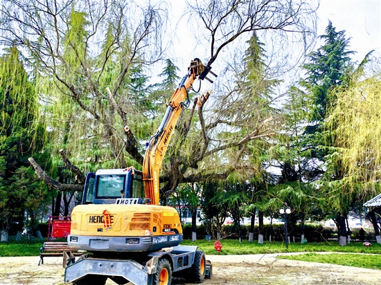 3月10日至14日,三门峡中日友好苑管理中心对黄河广场等区域大柳树进行整形修剪,去除干枯枝条促发新枝,及时消除安全隐患。 本报记者 王梦 摄