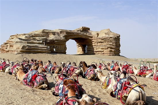 “沙漠之门”景区位于新疆维吾尔自治区阿拉尔市,是浙江文旅援疆“双珠”计划的一部分。“沙漠之门”景区占地面积14万平方米,年均接待游客60万人次。昔日的“死亡之海”成为当地旅游新名片。 新华社记者 刘佳琪 摄