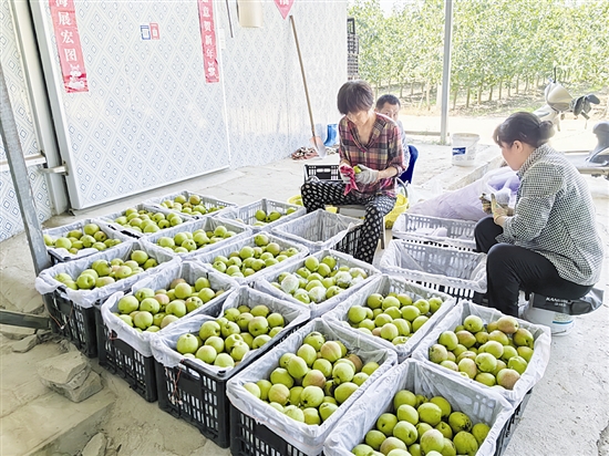 近日,在位于湖滨区磁钟乡寺庄村的三门峡玉森农业种植园,“新梨七号”进入采摘销售期。