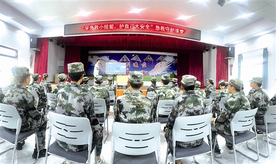 9月10日上午,灵宝市红十字会联合该市爱国卫生和健康服务中心(市120急救指挥中心)、市第一人民医院急诊科相关人员到三门峡正德学校开展世界急救日暨红十字青少年活动,向师生们系统讲解心肺复苏术及海姆立克急救法等知识,切实提升师生们的应急救护技能。图为授课现场。 王爽 摄