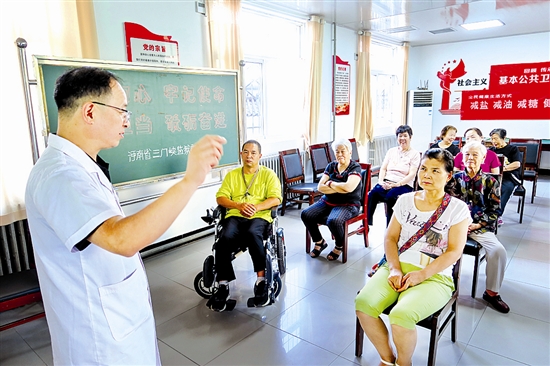 9月9日,湖滨区涧河街道第六社区卫生服务站在三门峡监狱小区举办健康知识讲座。讲座围绕家庭健康生活方式培养,强化“三减三健”等健康理念,打造家庭合理膳食、科学健身等健康支持性环境,培养家庭成员共同的健康生活方式,提升家庭健康水平。 本报记者 孙猛 摄