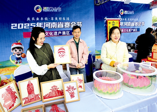丰收中原,硕果盈枝。9月23日,以“庆农业丰收 享美好生活”为主题的中国农民丰收节河南省主场活动在灵宝市焦村镇体育公园举行,来自全省各地的农民朋友晒特产、展民俗,载歌载舞,共同庆祝第八个中国农民丰收节。 本报记者 何英杰 摄