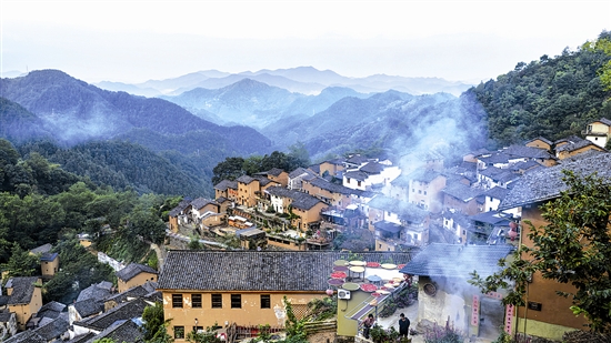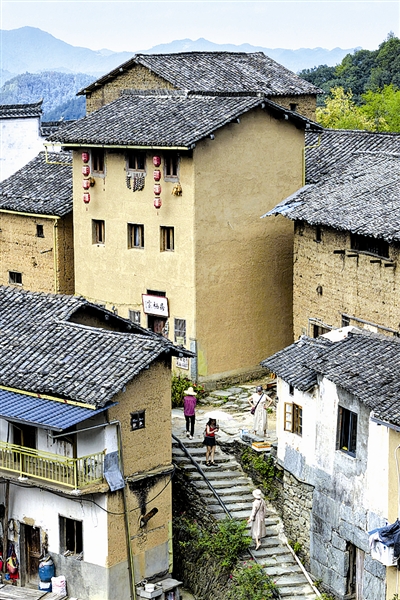 阳产村山多地少,以种植山核桃、板栗、茶叶等为主。过去,村庄无人问津,村民多外出打工,成了“空心村”。近年来,当地政府依托土楼和“晒秋”特色,大力发展乡村旅游业。村民们当向导、开民宿、办起农家乐,吃上了旅游饭。