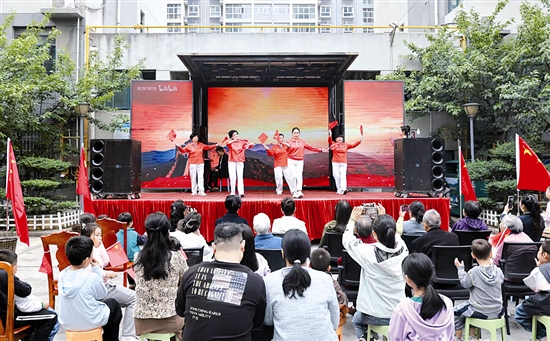 9月27日,湖滨区涧河街道六西社区联合锦绣嘉苑业委会以及隆祥物业,在锦绣嘉苑举办“迎国庆 优服务”业主联欢会。活动现场,精彩节目轮番上演,在喜迎国庆、中秋的热闹氛围中,拉近了邻里距离,让居民群众感受到社区服务的温暖。 本报记者 张明 摄