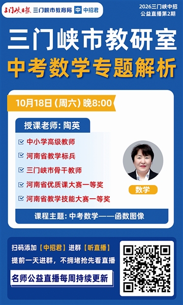 公益直播课每周一期,将针对中考各科重难点进行答疑解惑。各位老师、家长、学生可识别左下方二维码加“2026三门峡中招君”为好友,进群听课。本周六晚8:00,不见不散。 (本报记者)