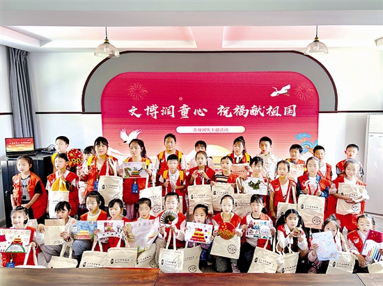 国庆期间,三门峡市博物馆精心组织开展“文博润童心 祝福献祖国”主题活动,引导孩子们把最真挚的红色祝福献给伟大祖国。图为活动中学生开心展示自己创作的手工作品。 李幸蔚 摄