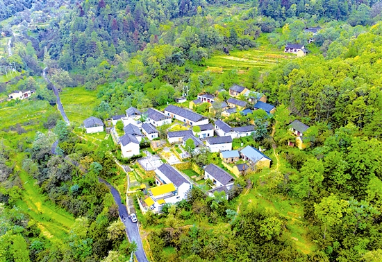 10月13日,雨后初晴,卢氏县朱阳关镇河南村壮子沟的绿水青山间,一排排古朴雅致的民宿被群山环抱,景色优美,令人陶醉。 本报记者 张朝峰 摄