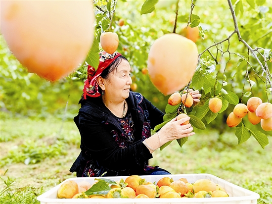 又到柿子成熟季,近日,渑池县南村乡利津旭慧石榴专业合作社在黄河岸边种植的百亩岱嵋蜜罐柿子红了,图为社员们利用晴好天气,抓紧采摘。 王家臣 摄