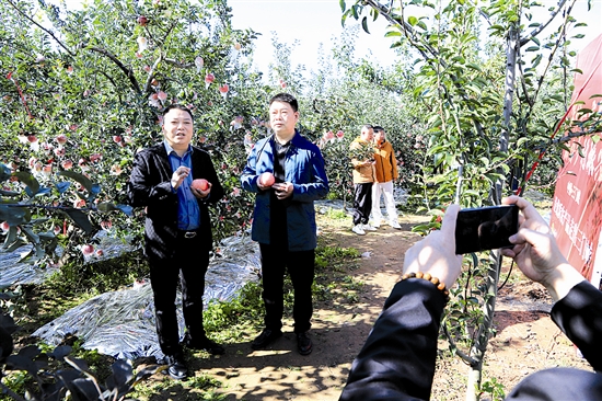 当日,三门峡陕州红富士苹果、焦作温县垆土铁棍山药采收节在陕州区启动,来自全国10余个省(区、市)230多名电商代表汇聚于此,共商发展大计。据了解,近年该公司通过线上线下年销售本地红富士苹果50多万斤,助力乡村振兴。 本报记者 王建栋 摄