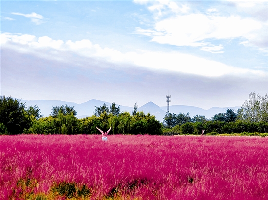 渑池县仰韶村国家考古遗址公园内,历史底蕴与浪漫秋色撞个满怀。如梦似幻的粉黛乱子草花海在秋风中泛起阵阵柔波,为古老的文明遗址披上了一层温柔的霞衣。