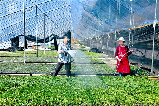 近期,在陕州区西张村镇大安头村蔬菜育苗大棚里,工作人员正为蔬菜幼苗喷洒营养液,以促进根系生长夯实育苗基础,保障周边大棚蔬菜种植用苗供给,助力当地蔬菜产业稳产增效和市场供应稳定。 本报记者 张明 摄