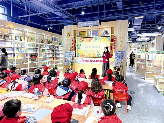 10月19日,三门峡日报小记者走进市新华书店,参加二十四节气知识普及活动。通过了解“寒露”节气的由来、气候特征与传统习俗,感受中华传统节气文化的独特魅力,进一步增强文化自信。图为工作人员讲解节气知识。 南飞燕 摄