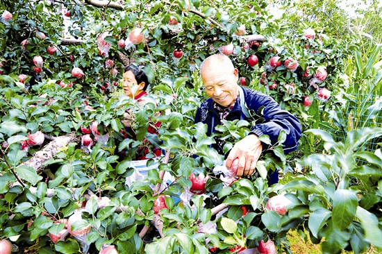 金秋十月,陕州区种植的红富士苹果喜获丰收,当地果农抢抓农时收获、外运,果园里一片忙碌景象。 本报记者 王建栋 摄