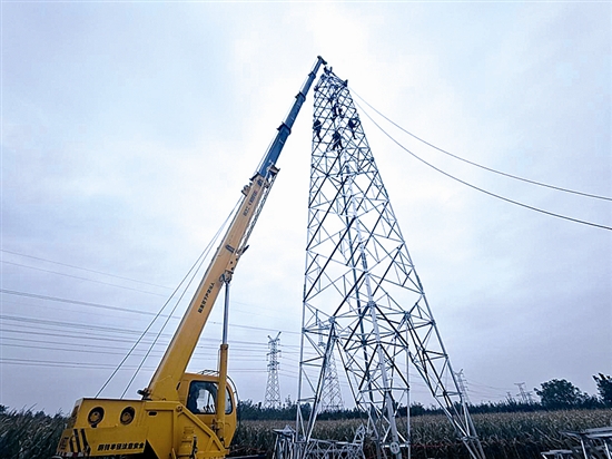 本报讯 10月24日,国网三门峡供电公司在湖滨区交口乡开展大唐磁钟风电110千伏送出工程组塔施工作业,为风电工程后续并网送电打下坚实基础。
