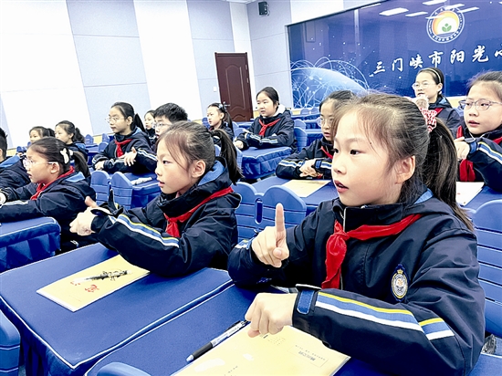 10月22日,三门峡日报小记者中心的老师走进市阳光小学,为校园主持人团队的孩子们带来了一堂生动的主持人培训课。 胡国芳 摄