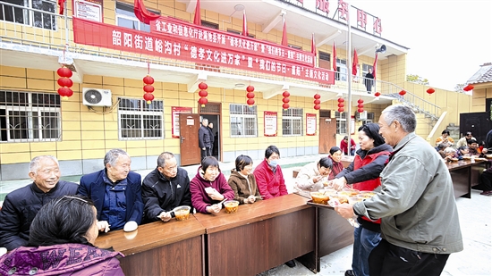 韶阳街道峪沟村将文化传承与便民服务相结合,在主题活动中通过文艺演出、本土红色故事宣讲,以文化为载体传递“尊老敬老”传统美德与红色基因,同时,聚焦老人实际需求,提供义诊、理发、政策宣传及图书角借阅等服务。活动后,村里组织共享节日午餐,并为行动不便的老党员上门送餐。此次活动不仅丰富了辖区老年人的精神文化生活,还以精准便民服务践行“我为群众办实事”实践活动理念,推动文明实践延伸至基层末梢。
